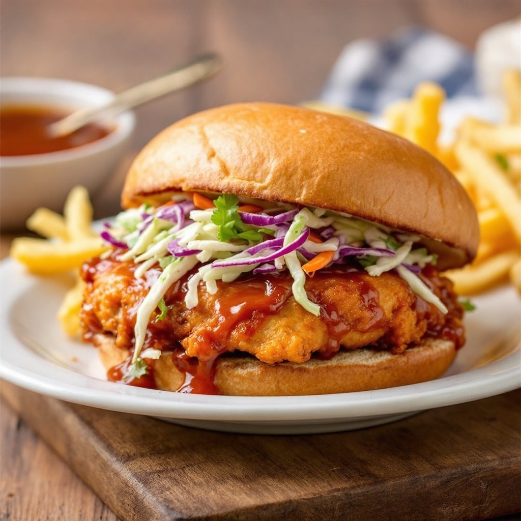 Are you ready to elevate your sandwich game? This spicy BBQ chicken sandwich brings together tender, juicy chicken slathered in a zesty barbecue sauce, topped with crunchy slaw, all nestled between two soft buns. It’s the perfect solution for a quick lunch or a weekend barbecue.